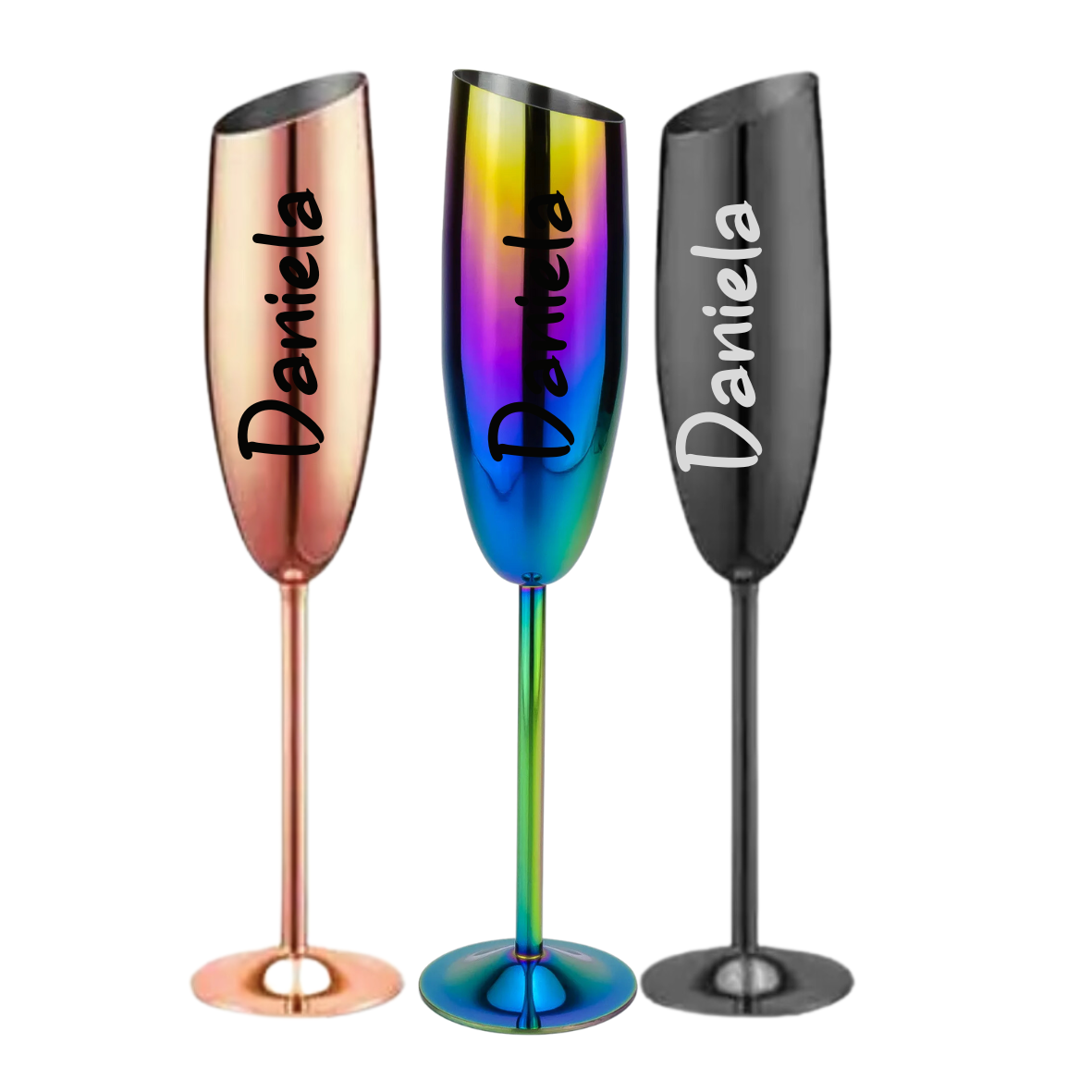 Edelstahl Sektglas – Rosé Matt oder Schwarz Matt mit Lasergravur (200 ml)